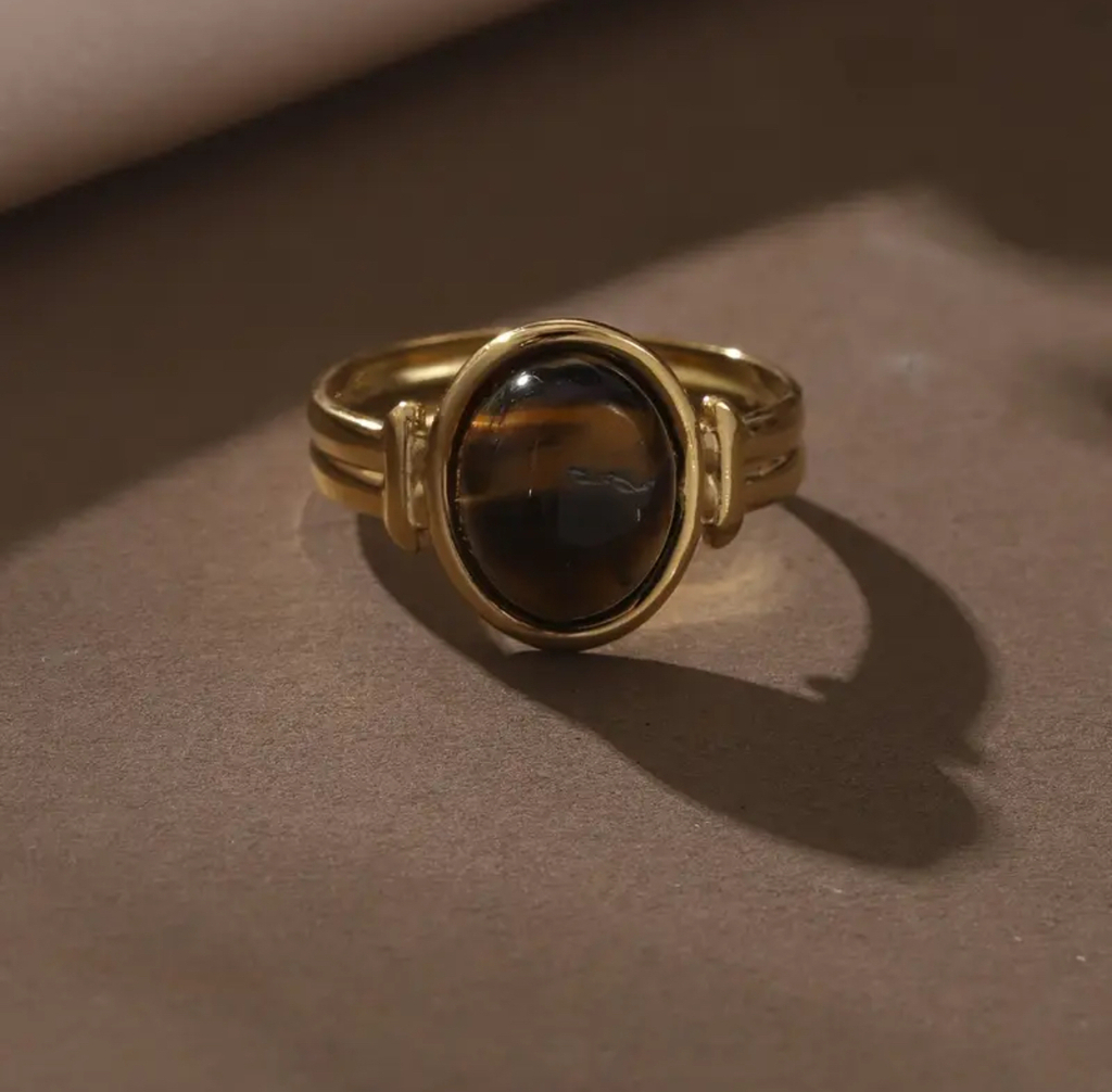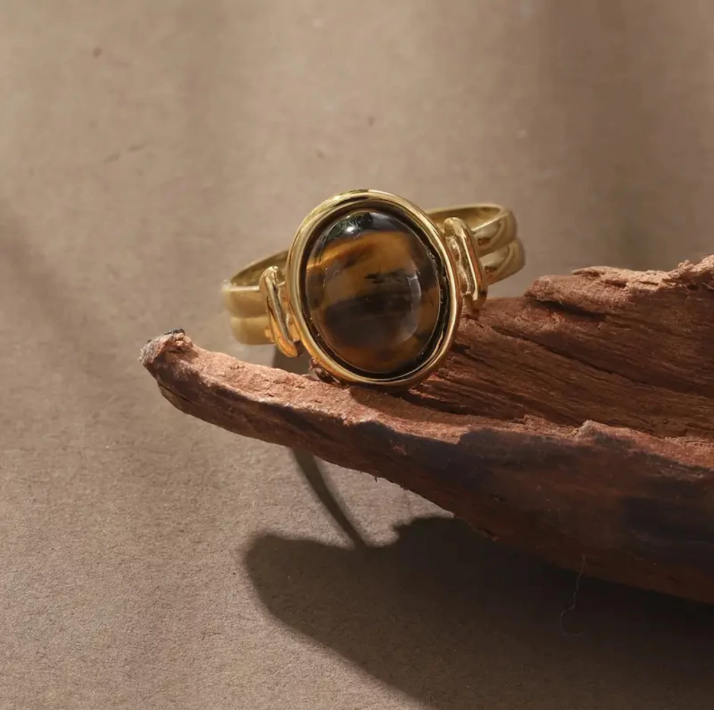 Con un diseño de aire vintage y una piedra natural en tono café al centro, esta joya evoca profundidad y conexión con tu interior. Su brillo cambia sutilmente con la luz, recordándote que tu verdad también se revela poco a poco.