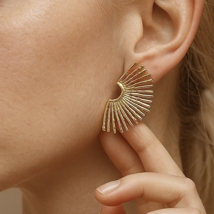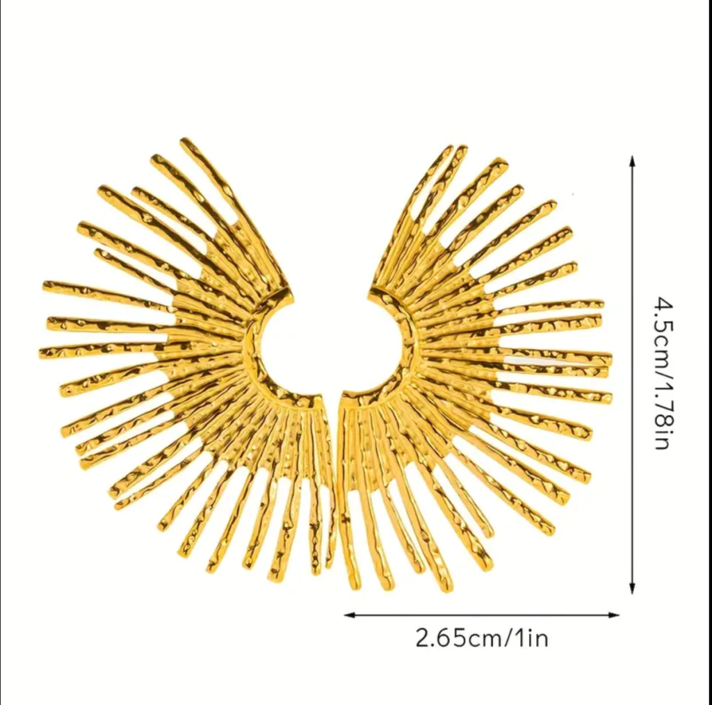 Su diseño en forma de destellos dorados abraza el rostro con elegancia, creando un efecto sofisticado y moderno que realza cualquier look, desde lo casual hasta lo más especial.