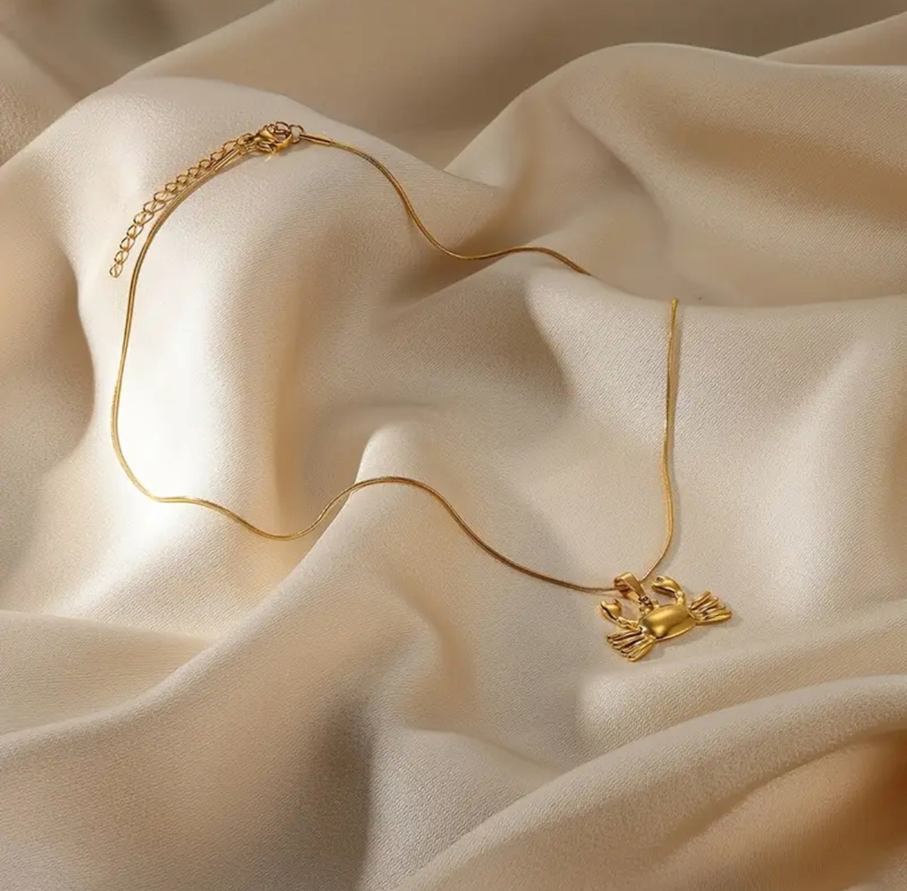 • Características clave: Resistente al agua | Hipoalergénica | Brillo duradero | Dije con forma de cangrejo