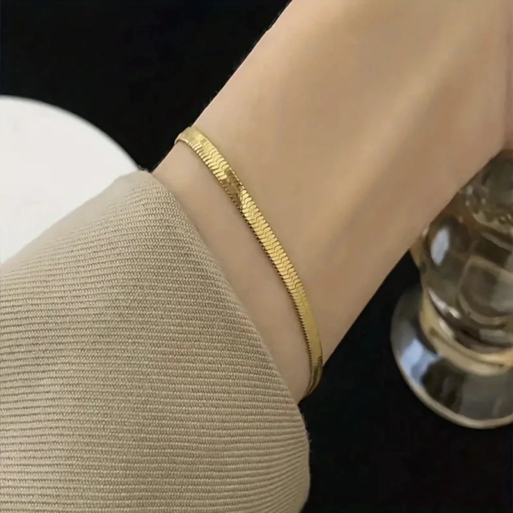 Su diseño plano y brillante refleja la luz con elegancia, haciendo de esta pieza un básico audaz que puedes usar sola o en combinación con otras pulseras.